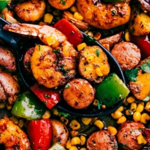 That said, if you are craving an easy jambalaya recipe with sausage and shrimp, youโve got to give my One Pan Jambalaya a try. While itโs not an authentic Jambalaya by any means, itโs got shrimp, sausage, rice, veggies, and a killer seasoning blend all prepared on one sheet pan. In fact, that is the recipe that inspired this Shrimp and Sausage Recipe!
