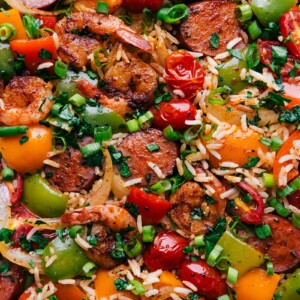 Letโs start with this disclaimer: this is not an authentic jambalaya recipe. I meanโฆ itโs made on a sheet pan, so that should tell you everything you need to know, ha!