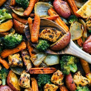 - To meal prep: prepare 1 cup uncooked quinoa or rice according to package directions and separate it evenly into 4 containers. Place an even amount of the sheet pan dinner into each container. Cover and place in the fridge. Enjoy by warming in the microwave.