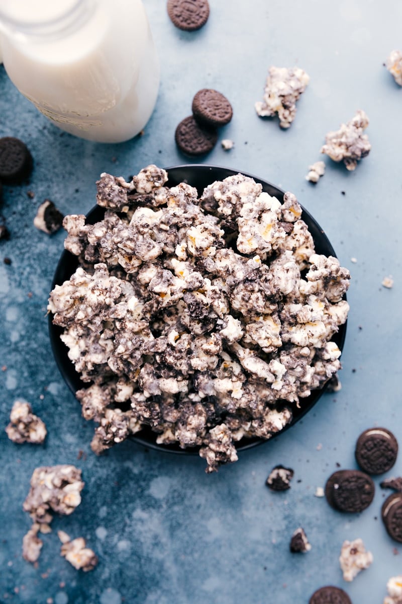 Thatโs how this Oreo Popcorn became a regular thing around here. I had already made my chocolate popcorn plenty of times, but it takes a bit more time and effort. One night I needed something faster, looked in the pantry, and saw a pack of Oreos and white chocolate chips. I figured cookies and cream popcorn had to be good.