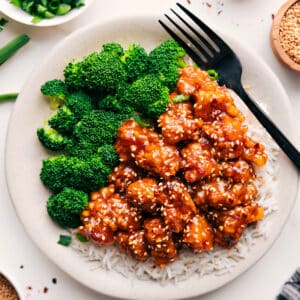 I make this recipe so often that on busy weeknights I usually skip frying the chicken from scratch. Instead, I use air-fried store-bought crispy chicken tenders, dice them up, and toss them in the sauce. Itโs a super close shortcut version and my kids barely even notice the difference.