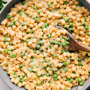 Use a nonstick pot for this pasta with peas recipe. Keep the heat at a gentle boil once the pasta is added. Stir often and run a silicone spatula along the bottom of the pot to lift any pasta that may be settling. This prevents sticking and helps the sauce stay smooth and creamy.