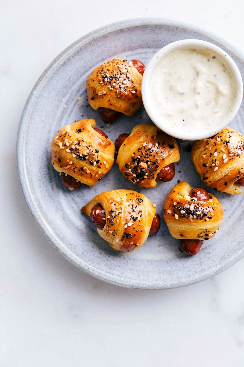 - Make Ahead: Assemble pigs in a blanket up to 4 hours in advance, cover, and refrigerate. Brush with egg wash and add seasoning just before baking. Sauce can be mixed and chilled ahead.