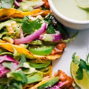 We like thin corn tortillas best for these tacos. My family enjoys Mission’s® extra-thin corn tortillas (not sponsored).