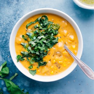 It turned out bright, creamy, and so fresh tasting. I blend a few cups and pour it back in, so it thickens up without any cream. Fresh corn in summer is delicious but Iโve used frozen corn in the winter and still had amazing results.