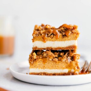Many of you have requested a 9 x 13-inch version of these delicious pumpkin cheesecake bars, so I’ve updated this post with step-by-step pictures, helpful tips, and a new recipe.