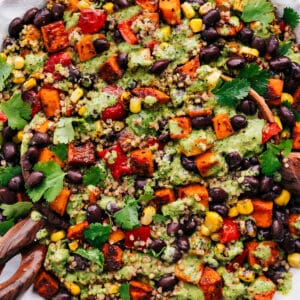 This Black Bean and Quinoa Salad was kind of a happy accident. I had leftover roasted sweet potatoes in the fridge and a can of black beans in the pantry, so I started tossing things together. I used a version of my favorite dressing, gave it a taste, and instantly knew I had something special. Itโs the perfect mix of hearty and refreshing, and Iโve been making it nonstop ever since. Honestly, I think this might be my new favorite salad.