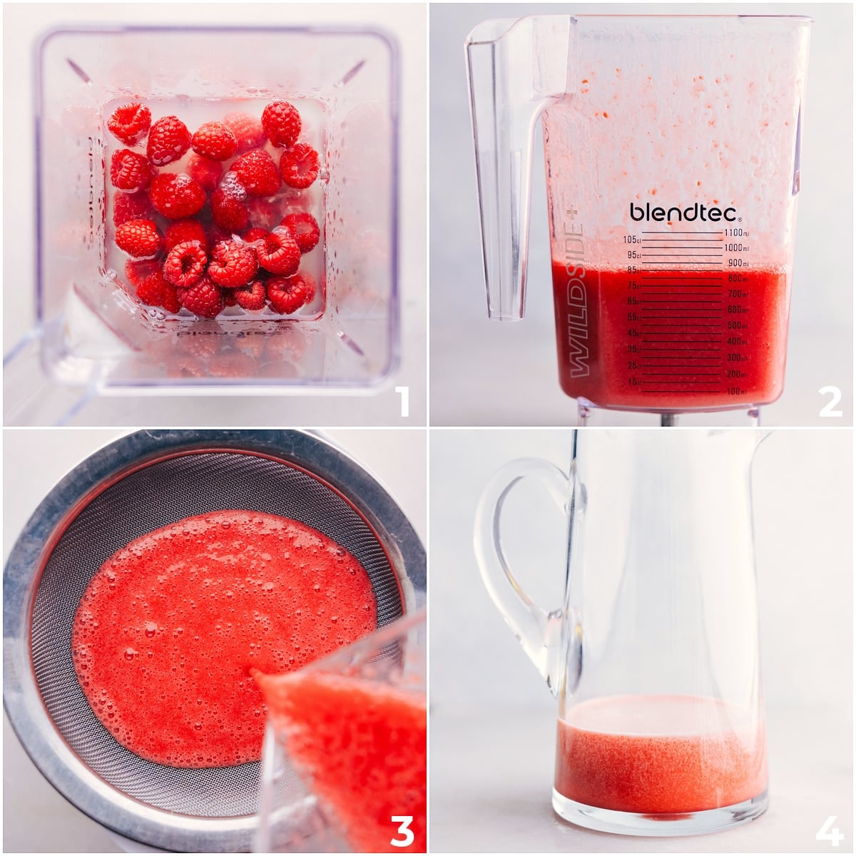 - Combine 1 cup lemon juice with sugar, raspberries, and salt in a high-powered blender. Blend until completely smooth, about 60 seconds.