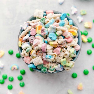 Iโve also included a recipe for a simple (10-minute prep) St. Patrickโs Day snack mix. That snack mix is perfect to serve at a St Patrickโs Day party or potluck โ everyone always goes crazy for it!
