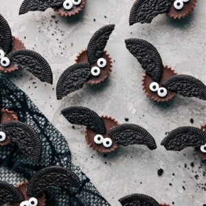 Halloween Bat Treats are the perfect spooky-season treat! Enjoy the creamy richness of Reeseโs cups, the crunch of Oreos, a hint of melted white chocolate, and fun candy eyes. Simple, tasty, and just the right amount of spooky with only four ingredients!