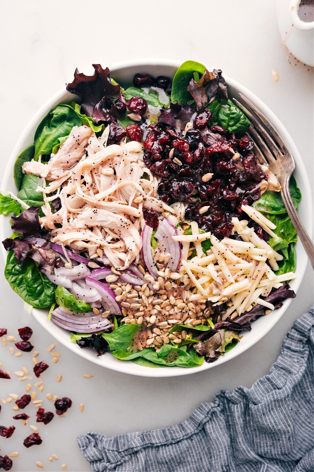 - Dress the salad: Pour the dressing over the Turkey Cranberry Salad.
