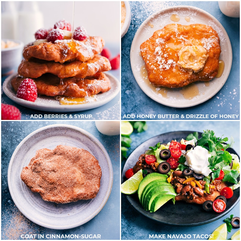 Fry Bread is typically enjoyed as part of a savory meal — usually replacing bread for sandwiches or replacing tortillas for tacos (like in Navajo Tacos). It can also be used to dunk in your favorite chili or soup recipe.