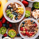 Top each bowl with the following: (Below are my recommendations; add your favorite toppings and add to your desired quantity. These topping suggestions are for one Acai Bowl.)