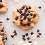 Use a 2-tablespoon measuring spoon or cookie scoop to portion the mixture onto the prepared sheet pans. Top each cookie with extra mini chocolate chips (about 1/2 teaspoon per cookie).