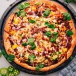 Note 1: Freshly shred cheese for the best melt. Pre-shredded cheese has additives that prevent it from melting smoothly.Toppings: Avoid overloading the pizza with too many toppings or wet ingredients. Less is more to prevent a soggy crust!Storage: Best eaten fresh. To reheat pizza, use the stovetop by heating it in a skillet for a crispy base. For the best results, the oven is ideal—just reheat at 350°F for about 7 minutes. If you’re short on time, the microwave works too, though the crust won’t stay as crisp.Nutrition Note: Nutritional information is based on 8 slices in the pizza.