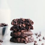 Bake for 8–12 minutes, then remove from the oven. It’s best to slightly underbake these cookies to keep them soft, fudgy, and chewy! If desired, top the cookies with a few more chocolate chips.