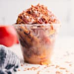 Caramel Apple Dessert Cups are a copycat of the famous Zupas treat, made with fresh-cut apples, a golden chocolate sauce, crunchy coconut topping, & a sprinkle of cinnamon.