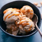 Remove the ice cube trays and run the bottoms under hot water for about 30 seconds, or until the cubes release easily. Place the ice cream cubes in a high-powered blender; no additional liquid is needed. If using a low-powered blender, add the reserved 1/3 cup of liquid. Blend until smooth and creamy, taking your time to scrape down the sides and stir as needed for an even consistency. Once fully blended, scoop into bowls and serve, ideally drizzled with caramel sauce and a sprinkle of Maldon sea salt.