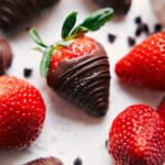 Chocolate Covered Strawberries are rich and chocolatey with a juicy strawberry center. They’re classically elegant, and you can add an extra drizzle of chocolate for a cute touch!