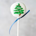 These Christmas Tree Pops are a festive holiday treat! With an Oreo base, a coating of creamy white chocolate, and a green candy melt “tree,” these pops are perfect for parties, gifting, or holiday fun with the kids!