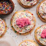 Decorate: Sprinkle with nonpareils if using and gently press a frosted animal cracker into the center of each cookie.