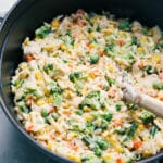 Return chicken and veggies to the pot and stir through. Add 3/4 cup Parmesan (a handful at a time), stirring in between additions, until melted. Taste and season with more salt and pepper to taste.