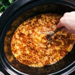 Add the diced potatoes to the slow cooker. Pour the sauce over top, then gently stir to coat everything and press into an even layer.