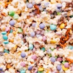 Easter Popcorn is the ultimate sweet-and-salty snack! Crunchy popcorn, pretzels, and Spring M&M’s get coated in creamy white chocolate for an easy, festive treat everyone will love.