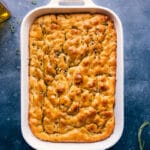 Optional Herbed Oil: Skip this step for plain focaccia. For herbed focaccia, heat 6 tbsp olive oil, minced garlic, thyme, rosemary, and pepper on low for 5–10 minutes or until very fragrant. Set aside to fully cool before using.