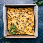 Note 1: Grate a block of sharp Cheddar on the large holes, then measure. Pre-grated cheese contains preservatives that keep the shreds from clumping together in the bag, but they also keep the cheese from melting smoothly and will cause a greasy frittata.Note 2: Grated Parmesan (in the can) is very salty and won’t melt as nicely in this recipe. I highly recommend grating a block of Parmesan cheese on the large holes of a grater.Storage: Not serving right away? Transfer to a wire cooling rack and pull out parchment paper from underneath (or it gets soggy). Cut and store in fridge for 3–5 days or freeze leftover pieces (Reheat in microwave).