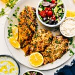 Note 1: Use one herb or a mix. I like parsley, oregano, and thyme. No fresh herbs? Just use an extra teaspoon of dried oregano.Note 2: I LOVE this chicken with lemon rice, this quick homemade tzatziki sauce, Greek salad, and grilled pita.Storage: Marinade only: Store in the fridge for up to 5 days. Cooked chicken: Store in an airtight container in the fridge for 3–5 days.