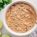 While the cream cheese melts, shred the chicken with two forks or slice it thinly. Once the cream cheese is fully incorporated, stir the chicken back into the soup. Add 1–2 tablespoons of lime juice and cilantro, if desired. Taste and adjust the seasonings.
