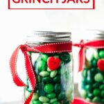 Grinch Jars are a holiday treat perfect for gifting! Fill mason jars, tie on a red ribbon, and add a heart button for a whimsical nod to the Grinch’s growing heart.