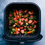 Meanwhile, in the same bowl used for the carrots, add chopped broccoli florets and coined (1/2-inch thick) chicken sausage with remaining 2 tablespoons olive oil, remaining 1 tablespoon herb mix, 1/4 teaspoon salt, and 1/4 teaspoon pepper. Toss to coat. When carrots have cooked for 14 minutes, add sausage and broccoli right on top in the air fryer basket. No need to stir or mix. Air fry for another 7–10 minutes or until broccoli and sausage are lightly browned. (Everything should be crisp-tender.) Timing may vary depending on your air fryer model.