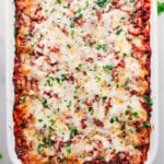 Note 1: I use 93/7 lean ground beef and a good sweet Italian sausage--delicious combo! If you’d like some heat, use spicy Italian sausage.Note 2: Use a food processor to quickly chop equal amounts of onion, carrot, and celery, or you can buy this mix labeled “mirepoix” (already prepped onion, celery, carrots) at a lot of stores in the produce section or frozen vegetable section of the store.Note 3: Beef bouillon powder and Worcestershire sauce are the “secret” ingredients to unlocking loads of flavor.Note 4: Don’t use Parmesan from the can; it doesn’t melt well and will be too salty. Use fresh finely grated Parmesan instead!Note 5: Make Ahead: I like making this meat sauce the night before, then refrigerating and reheating on the stovetop the next day; wonderful flavor and breaks up the work!Storage: Let lasagna cool to room temperature, then wrap tightly and keep in the fridge for up to 3–5 days. To freeze it, let cool completely, wrap tightly in plastic and foil, and store in the freezer for up to 3 months.