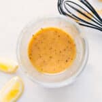 Note 1: I love Grey Poupon® Dijon best. Make sure to use Dijon, not yellow mustard.Note 2: Or replace Italian seasoning with 1 teaspoon dried oregano or 1 teaspoon dried basil.Note 3: A few kitchen tools make recipe prep a breeze—I love zesting the lemon with a zester and juicing with this citrus juicer. When zesting the lemon, avoid the white pith of the lemon—this is very bitter. Zest only the very outside yellow part of the lemon.Nutrition Note: Nutrition information is for the entire recipe. Lemon Vinaigrette has about 130 calories per tablespoon.Storage: Store in an airtight container in the fridge for 5–7 days. If the dressing separates or solidifies (olive oil does this when cold), let it sit at room temp for 15–20 minutes, shake well, and use again!