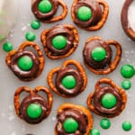 Bake the pretzels in the preheated oven for about 2 minutes, or until the Rolos are soft but not melted (see note 2). Keep a close eye on them so they don’t burn!