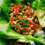 Transfer filling to a serving bowl. Spoon into lettuce leaves and top with green onions and optional chopped nuts. Serve with lime wedges and squeeze fresh lime over the wraps before eating. Enjoy right away.