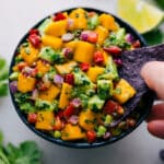 Note 1: A ripe mango makes this salsa perfect! It should be slightly soft, like a ripe peach. Yellow honey mangoes are best. Here’s how to cut a mango.Note 2: To adjust the salsa’s heat, remove the jalapeño seeds and ribs for milder flavor, or leave them in for more spice. Wear gloves when handling jalapeños to avoid skin irritation.Note 3: You’ll need about half a bunch of cilantro. Twist to separate the leaves and tender stems, then finely chop both to get 1/4 cup.Storage: While salsa is best enjoyed fresh, it can be stored in an airtight container in the fridge for up to 1 day (the avocado may start to brown after this). Stir well before enjoying leftovers.