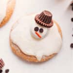Melted Snowman Cookies layer peanut butter cookies, mini peanut butter cups, and creamy white chocolate for a festive cookie that somehow tastes even better than it looks!