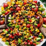 This Mexican Pasta Salad is packed with flavor! Mini bowtie pasta, fresh veggies, and black beans all tossed in a zesty chili-lime vinaigrette—it’s the perfect side dish or light meal.