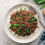 Nutrition Note: Nutrition information doesn’t include rice.Storage: Cool the Mongolian ground beef completely and keep in an airtight container in the fridge for up to 3–4 days. Freeze in portioned, airtight containers for up to 3 months; thaw in the fridge before reheating.