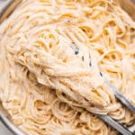 Note 1: Use a very large skillet or pot so the pasta, sauce, and pasta water can be tossed easily. This helps the sauce turn smooth and glossy.Note 2: Freshly grated Parmesan makes all the difference in this recipe. Do not use canned or pre-shredded cheese, or the sauce may turn clumpy. Using a microplane/zester, grate a block of Parmesan. For even more flavor use Parmigiano Reggiano.Note 3: The sauce is ready when it coats the back of a spoon. Run a finger across the spoon. If the line stays clear, it’s thick enough.Note 4: The sauce should be silky and cling to the pasta. If it looks thick or grainy, add a splash more pasta water and toss again.Storage: Dish is best right after the sauce is emulsified, when it’s at its creamiest. Leftovers will thicken as they sit. Reheat gently with a splash of heavy cream or chicken broth to loosen the sauce. This dish does not freeze well.