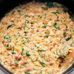 This Chicken Orzo Recipe is a one-pot dish with tender chicken, orzo, and veggies, all cooked together in a creamy, flavorful meal with juicy sun-dried tomatoes and spinach.