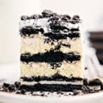 Oreo Icebox Cake layers softened cookies, pudding, and whipped cream into a chilled dessert that cuts like cake and tastes like cookies and cream heaven.