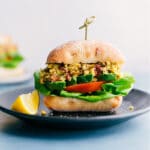 Note 1: Use the sun-dried tomatoes packed in oil—those have the most flavor! While they’re generally pretty small as is, a quick coarse chop (or cut with sharp kitchen shears) ensures they’ll make it into every bite of the sandwiches. My brand of choice is California® sun-dried tomatoes that have been julienne cut and have herbs added.Note 2: I recommend refrigerated, freshly-made basil pesto, which you can find near refrigerated fresh pasta and gourmet cheese. Rana’s® Basil Pesto is my favorite store-bought pesto.Note 3: Options for assembly: bread/sandwich rolls, lettuce, tomato, avocado, onion, etc. (whatever you like on a sandwich!).Nutrition Note: Nutrition information doesn’t include bread and optional toppings.Storage: Store leftover Pesto Chickpea Sandwich filling in an airtight container in the fridge for up to 3 days. Assemble sandwiches fresh to keep the bread from getting soggy.
