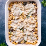 Note 1: Use a package of ultra-thin sliced provolone cheese. Take out 6 slices for topping and dice the rest into small pieces for the cheese sauce (you should get about 1 cup). If you aren’t using the ultra-thin cheese slices, the provolone is overpowering as the topping.Note 2: Since you’ll bake the pasta after it’s been cooked, make sure to drain it 1 minute before the package suggests for al dente. This way, as it bakes, it will end up perfectly tender instead of mushy.Note 3: Seasoning as you cook is important for this dish (while keeping in mind that the cheese adds more saltiness). I like to salt the pasta water (thus seasoning the cavatappi) and season the vegetables, the beef, and the cheese sauce. Taste all the elements as you cook and add a dash more if any of the flavors seem flat.Storage: Store Philly Cheesesteak Pasta leftovers in an airtight container in the fridge for up to 4 days. Reheat in the microwave or on the stovetop with a splash of milk to keep it creamy.