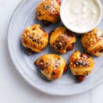 Note 1: Add salt to preference. Between the dough and hot dogs, these are pretty salty on their own, but if you like a super salty treat, add some additional.Nutrition Note: Nutrition information is calculated based on 24 appetizers and does not include the dipping sauce.Storage: Store leftover pigs in a blanket in an airtight container in the fridge for up to 3 days. Reheat in the oven at 350°F until warm and flaky.