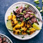 Pineapple Steak is a flavor-packed feast! Juicy, seasoned steak meets sweet, smoky pineapple topping, all served over coconut-lime rice for a tropical taste in every bite!