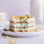 This Pistachio Icebox Cake is irresistible! Layers of graham crackers, creamy pistachio pudding, whipped cream, and crunchy pistachios come together for a sweet, nutty treat. Just chill overnight for the easiest make-ahead dessert!